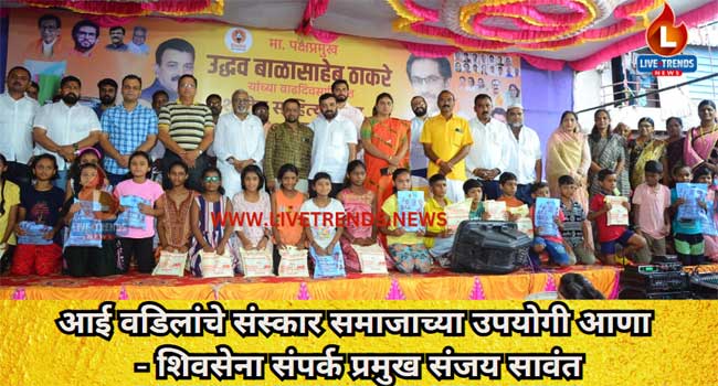 जळगाव-लाईव्ह ट्रेंडस न्यूज प्रतिनिधी ।  समाजात मोठे होत असताना संस्कार हे खूप महत्त्वाचे असतात आई वडिलांनी आपल्यावर केलेले संस्कार हे समाजाच्या उपयोगी आणावेत असे प्रतिपादन शिवसेना संपर्क प्रमुख संजय सावंत यांनी केले. ते शिवसेना जळगाव महानगर च्या वतीने उप महानगर प्रमुख प्रशांत सुरळकर यांनी पक्षप्रमुख उध्दव बाळासाहेब ठाकरे यांच्या वाढदिवसा निमित्त आयोजित केलेल्या शालेय विद्यार्थ्यांना शैक्षणिक साहित्य वाटप  कार्यक्रम प्रसंगी ते बोलत होते.