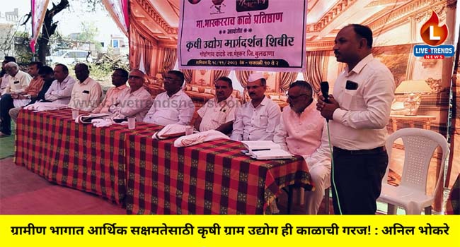 बुलढाणा-लाईव्ह ट्रेंडस न्यूज प्रतिनिधी । ग्रामीण भाग जर आर्थिक सक्षम करून प्रत्येकाच्या हाताला काम आणि येणाऱ्या काळात प्रगती करण्यासाठी कृषीग्राम उद्योगाची नितांत आवश्यकता आहे. असे प्रतिपादन माजी कृषी उपसंचालक अनिल भोकरे केले. बुलढाणा जिल्ह्यातील गोहगाव दांदडे, तालुका – मेहकर, जिल्हा – बुलढाणा येथे छत्रपती शिवाजी ब्रिगेड व भास्करराव काळे प्रतिष्ठान आयोजित कृषी उद्योग मार्गदर्शन शिबिराच्या प्रसंगी ते बोलत होते.