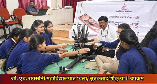 जळगाव-लाईव्ह ट्रेंडस न्यूज प्रतिनिधी । नविन राष्ट्रीय शैक्षणिक धोरणानुसार समृद्ध प्राचीन भारतीय ज्ञानपरंपरेचे ज्ञान विविध अभ्यासक्रमांच्या माध्यमातून विद्यार्थ्यांपर्यंत पोहोचवण्यासाठी केंद्रीय शिक्षण मंत्रालयाच्यावतीने ‘इंडियन नॉलेज सिस्टीम’ हा प्रकल्प राबविण्यात येत आहे. शाळांपासून ते विद्यापीठीय शिक्षणापर्यंतच्या विविध अभ्यासक्रमांमध्ये भारतीय ज्ञानाविषयीची माहिती अंतर्भूत केली जाणार असून याच अनुषंगाने जी. एच. रायसोनी इन्स्टिट्यूट ऑफ इंजीनियरिंग अँड बिजनेस मॅनेजमेंट महाविध्यालयात गांधी रिसर्च फाऊंडेशनच्या माध्यमातून ‘चला, सूतकताई शिकू या !’ या आगळ्यावेगळ्या प्रशिक्षण उपक्रमाचे आयोजन करण्यात आले होते.