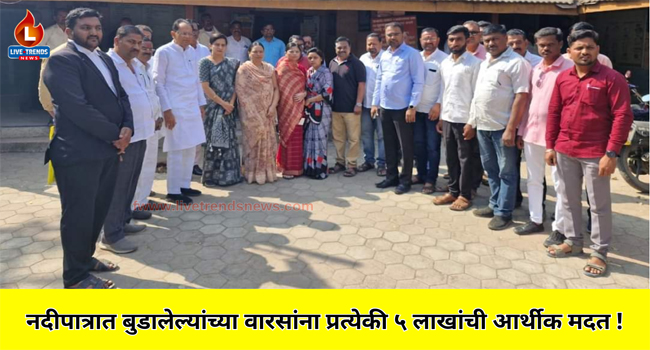 पारोळा-लाईव्ह ट्रेंडस न्यूज प्रतिनिधी । जळगाव तालुक्यातील श्रीक्षेत्र रामेश्वर येथील नदीपात्रात बुडून मृत्यू झालेल्या तिन जणांच्या वारसांना आ.चिमणराव पाटील यांच्या प्रयत्नातून प्रत्येकी ५ लाख रूपयांची मदत देण्यात आले. यावेळी वारसांना आ.पाटील यांच्याहस्ते धनादेश सुपूर्त करण्यात आला.