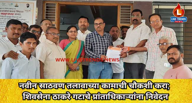 यावल-लाईव्ह ट्रेंडस न्यूज प्रतिनिधी । नगरपरिषेच्या माध्यमातून लाखो रूपये खर्च करून नवीन साठवण तलावाची निर्मीती करण्यात आली आहे. या तलावातून शहरात पाणीपुरवठा होत असल्याने नवीन साठवण तलावाच्या कामाची चौकशी करण्यात यावी या मागणीसाठी शिवसेना ठाकरे गटाच्या वतीने फैजपूर प्रांताधिकारी कैलास कडलग यांना निवेदन देण्यात आले.