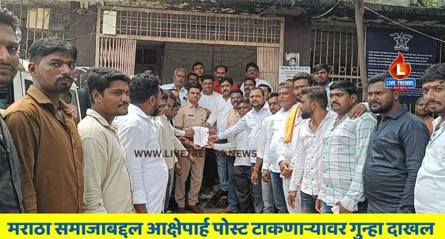 मुक्ताईनगर-लाईव्ह ट्रेंडस न्यूज प्रतिनिधी । आमदार चंद्रकांत पाटील यांच्या सत्कार सोहळ्यानंतर पोटशुळ उठलेल्या विजय पाटील नामक बोदवड तालुक्यातील एका पक्षाच्या भाडोत्री समाजकंटकाने सत्कार सोहळ्याविषयी आक्षेपार्ह व शिवराळ भाषेत तसेच मराठा समाजातील दोन गटात तेढ निर्माण होईल, अशा संतापजनक पोस्ट टाकली होती. यामुळे समाजाकडून संताप व्यक्त केला जात आहे. आक्षेपार्ह पोस्ट टाकणाऱ्यावर तातडीने गुन्हा दाखल करण्यात यावा अशी मागणीचे निवेदन मुक्ताईनगर मराठा समाजाच्या वतीने पोलीस निरीक्षक नागेश मोहिते यांना देण्यात आले.