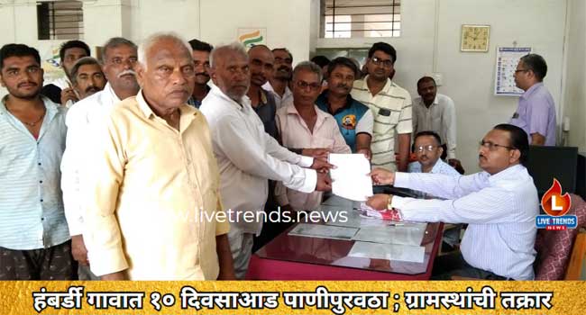 यावल-लाईव्ह ट्रेंडस न्यूज प्रतिनिधी । यावल तालुक्यातील हंबर्डी गावात १० दिवसानंतर पाणीपुरवाठा केला जात आहे. त्यामुळे येथील ग्रामस्थांना पाण्यासाठी भटकंती करावी लागत आहे. पिण्याच्या पाण्याचा प्रश्न तातडीने सोडवा अशी मागणीचे निवेदन यावल पंचायत समितीवर गटविकास अधिकारी यांना देण्यात आले. ग्रामपंचायत कार्यालयात गटविकास अधिकारी येत नसल्याने आणि ग्रामपंचायतीच्या भोंगळ कारभाराबाबात ग्रामस्थांनी संताप व्यक्त केला.