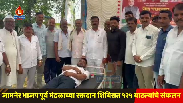 जामनेर-लाईव्ह ट्रेंड्स न्यूज प्रतिनिधी । पंतप्रधान नरेंद्र मोदी यांच्या वाढदिवसानिमित्त भारतीय जनता पक्षाच्या सेवा पंधरवाडा उपक्रमाअंतर्गत जामनेर तालुक्यातील पूर्व मंडळात वाडी किल्ला व ढालगाव येथे भव्य रक्तदान शिबिराचे आयोजन करण्यात आले. “सेवा हीच संघटना” या संकल्पनेवर आधारित या उपक्रमात एकूण १२५ रक्तदात्यांनी उत्स्फूर्त सहभाग नोंदवत १२५ रक्त बाटल्यांचे संकलन करण्यात आले.
