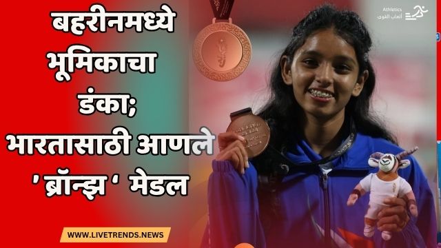 मुक्ताईनगर -लाईव्ह ट्रेंड्स न्यूज प्रतिनिधी । तालुक्यातील कोथळी गावातील भूमिका संजय नेहते हिने बहरीन येथे झालेल्या आंतरराष्ट्रीय अॅथलेटिक स्पर्धेत आपल्या अविश्वसनीय वेग आणि जिद्दीच्या बळावर २०० मीटर धावस्पर्धेत ब्रॉन्झ मेडल पटकावले आहे. या यशामुळे भारताचा आणि मुक्ताईनगर तालुक्याचा मान जागतिक स्तरावर अभिमानाने उंचावला आहे.