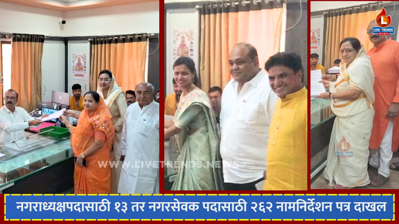 चोपडा नगरपालिका निवडणुकीत नगराध्यक्षपदासाठी १३ तर नगरसेवक पदासाठी २६२ नामनिर्देशन पत्र दाखल