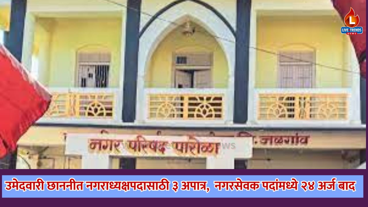 पारोळा नगरपालिकेच्या उमेदवारी छाननीत नगराध्यक्षपदासाठी ५ अर्ज पात्र, ३ अपात्र  नगरसेवक पदांमध्ये २४ अर्ज बाद