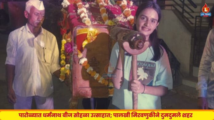 पारोळा, लाईव्ह ट्रेंड्स न्यूज प्रतिनिधी । येथील नाथ जोगी समाजातर्फे आराध्य दैवत श्री गोरक्षनाथ महाराज यांच्या स्मरणात ‘धर्मनाथ बीज’ सोहळा मोठ्या उत्साहात आणि भक्तीमय वातावरणात साजरा करण्यात आला. यानिमित्ताने शहरातून भव्य पालखी मिरवणूक काढण्यात आली असून विविध धार्मिक कार्यक्रमांचे आयोजन करण्यात आले होते.