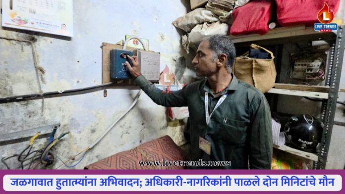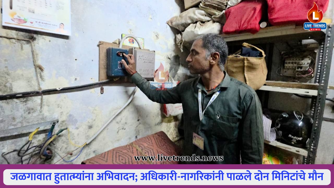 जळगाव- लाईव्ह ट्रेंड्स न्यूज प्रतिनिधी । भारतीय स्वातंत्र्यलढ्यात प्राणांची आहुती देणाऱ्या हुतात्म्यांच्या स्मरणार्थ ३० जानेवारी रोजी जळगाव शहरात दोन मिनिटे मौन पाळून कृतज्ञतापूर्वक श्रद्धांजली अर्पण करण्यात आली. शासनाच्या आदेशानुसार जळगाव महानगरपालिकेने सकाळी ठीक ११ वाजता आयोजित केलेल्या या उपक्रमाला अधिकारी, कर्मचारी आणि नागरिकांचा उत्स्फूर्त प्रतिसाद लाभला. काही क्षणांसाठी शहरातील दैनंदिन हालचाली थांबल्या आणि परिसरात गंभीर शांततेचे वातावरण निर्माण झाले.