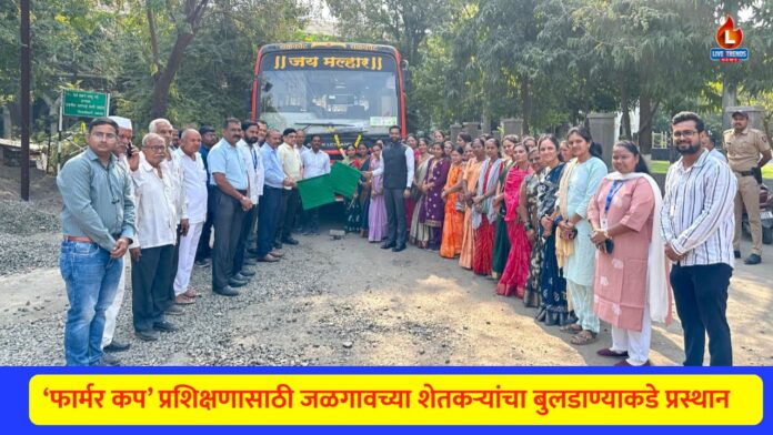जळगाव -लाईव्ह ट्रेंडस न्यूज प्रतिनिधी । पाणी फाउंडेशनच्या वतीने आयोजित ‘फार्मर कप’ निवासी प्रशिक्षणासाठी जळगाव तालुक्यातील महिला व पुरुष शेतकऱ्यांची तुकडी आज बुलडाणा जिल्ह्यातील जळगाव जामोद येथील के.व्ही.के. सेंटरकडे रवाना झाली. जिल्हाधिकारी रोहन घुगे यांनी या बसला हिरवा झेंडा दाखवून शेतकऱ्यांना शुभेच्छा दिल्या.