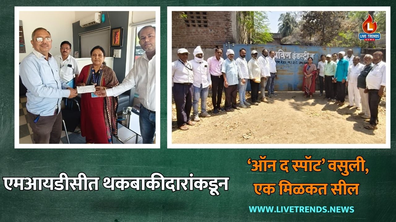 जळगाव-लाईव्ह ट्रेंड्स न्यूज प्रतिनिधी । जळगाव शहर महानगरपालिकेने थकीत मालमत्ता कर वसुलीसाठी एमआयडीसी परिसरात धडक कारवाई करत थकबाकीदारांवर कठोर भूमिका घेतली आहे. अतिरिक्त आयुक्त शोभा बाविस्कर यांच्या नेतृत्वाखाली राबविण्यात आलेल्या या विशेष मोहिमेत औद्योगिक कंपन्यांकडून मोठ्या प्रमाणावर थकीत कराची वसुली करण्यात आली. या कारवाईमुळे महानगरपालिकेच्या महसूल वाढीस चालना मिळाली असून थकबाकीदारांमध्येही खळबळ उडाली आहे.