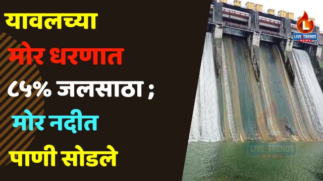यावल-लाईव्ह ट्रेंड्स न्यूज प्रतिनिधी । सातपुडा पर्वतरांगांच्या कुशीत वसलेल्या यावल तालुक्यातील मोर धरण भरून वाहू लागले असून, धरणात ८५ टक्के जलसाठा झाल्याने प्रशासनाने दोन दरवाजे उघडून १५०.९६ क्युसेस पाणी मोर नदीच्या पात्रात सोडले आहे. यामुळे यावल तालुक्यातील अनेक गावांतील शेतकऱ्यांमध्ये आनंदाचे वातावरण आहे, कारण या वर्षी पहिल्यांदाच मोर नदीतून पाणी सोडण्यात आले आहे.