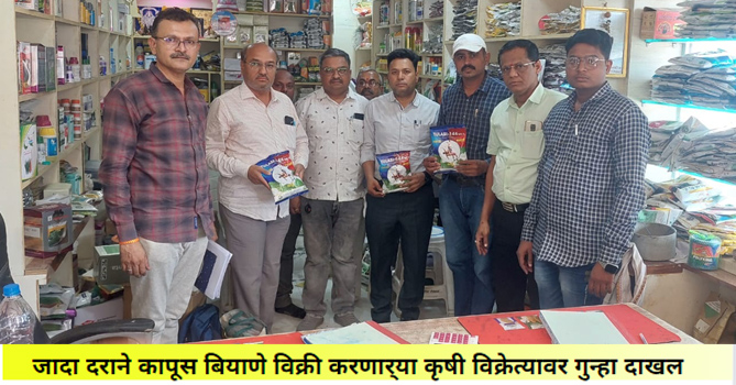 याप्रसंगी कृषी केंद्रावर त्यांना ८६४ रुपयास मिळणारे कापूस पिकाचे कबड्डी वाण बाराशे रुपये किमतीस शेतकर्यास विक्री करताना रंगे हात पकडले. सदर घटनेच्या आधारे दिनांक २७ मे रोजी पोलीस स्टेशन पारोळा येथे गुरनं.१६९/२०२४ अन्वये जिल्हा गुणवत्ता नियंत्रण निरीक्षक विकास बोरसे यांनी गुन्हा दाखल केला आहे.