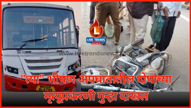 नशिराबाद पोलिसांनी दिलेली माहिती अशी की, भुसावळ तालुक्यातील साकेगावजवळ जवळून गेलेल्या राष्ट्रीय महामार्ग क्रमांक ६ वरील वाघुर नदीच्या पुलावर भरधाव वेगाने येणाऱ्या बस क्रमांक (एमएच २० बीएल २७३९) ने भुसावळकडून जळगावकडे येणाऱ्या दुचाकी क्रमांक (एमएच १९ एएम ६८७)ला जोरदार धडक दिली होती. या धडकेत दुचाकीस्वार कुतुबुद्दीन शेख अजीमुद्दीन व त्यांची आई बदरूनिसा शेख कुतुबुद्दीन दोन्ही रा. मास्टर कॉलनी,जळगाव या दोघांचा भीषण अपघातात दुर्दैवी मृत्यू झाला होता. ही घटना रविवार ५ नोव्हेंबर नोव्हेंबर रोजी सायंकाळी ६ वाजता घडली होती. या अपघात प्रकरणी वसीम शेख कुतुबुद्दीन शेख (वय-३७) रा.मास्टर कॉलनी यांनी दिलेल्या फिर्यादीवरून मंगळवार ७ नोव्हेंबर रोजी रात्री ९ वाजता नशिराबाद पोलीस ठाण्यात बसवरील अज्ञात चालकाविरोधात गुन्हा नोंदविण्यात आला आहे. या घटनेचा पुढील तपास पोहेकॉ गजानन देशमुख करीत आहे.