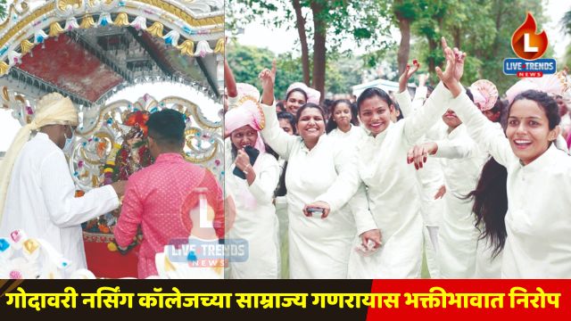 जळगाव – लाईव्ह ट्रेंड्स न्यूज प्रतिनिधी । जळगावमधील गोदावरी कॉलेज ऑफ नर्सिंगमध्ये गणेशोत्सव साजरा करण्यात आलेल्या साम्राज्य गणरायास आज पाचव्या दिवशी भक्तीभावात, पारंपरिक पद्धतीने आणि सांस्कृतिक रंगांनी सजलेल्या वातावरणात निरोप देण्यात आला. गणेश पूजनापासून ते विसर्जनापर्यंत संपूर्ण कार्यक्रमात अध्यात्म, संस्कृती आणि विद्यार्थ्यांचा उत्साह यांचा सुंदर संगम पाहायला मिळाला.