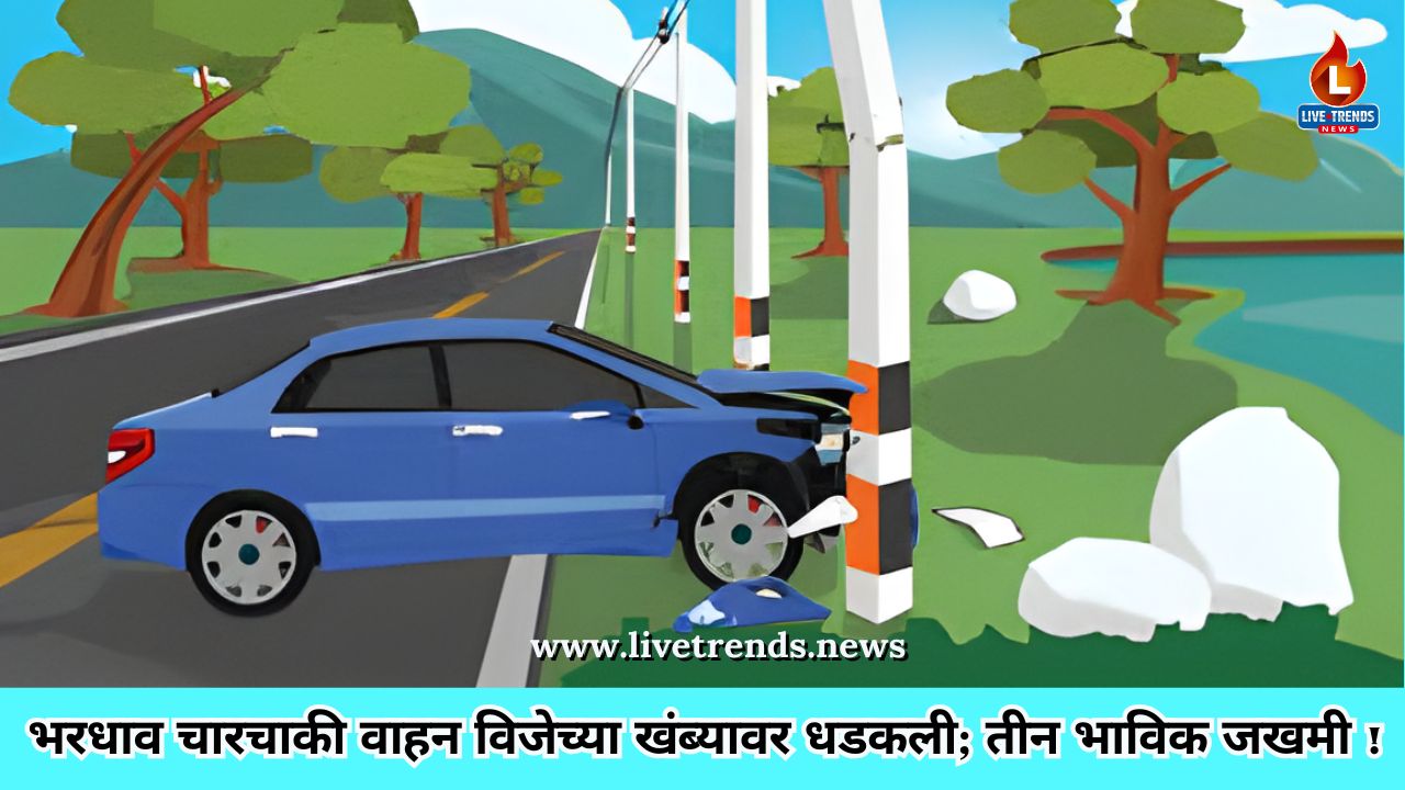 भरधाव चारचाकी वाहन विजेच्या खंब्यावर धडकली; तीन भाविक जखमी !