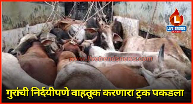 भुसावळ-लाईव्ह ट्रेंडस न्यूज प्रतिनिधी । शहरातील राजस्थान मार्बल दुकानासमोरून गुरांची निर्दयीपणे वाहतूक करणारे ट्रक भुसावळ बाजारपेठ पोलिसांनी पकडला आहे. यामध्ये जनावरांना इजा होईल अशा पद्धतीने कोंबून वाहतूक होत असल्याचे निष्पन्न झाले. या प्रकरणी दोन जणांविरोधात गुन्हा दाखल करण्यात आला आहे.