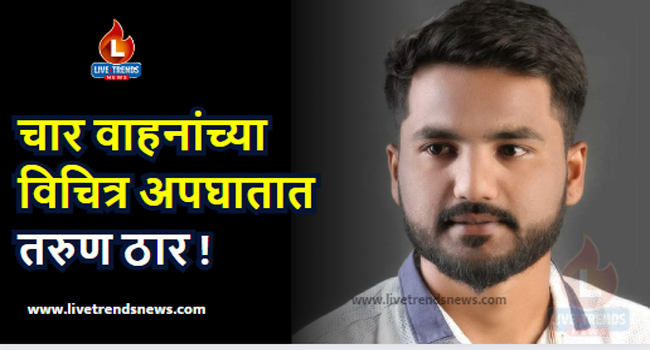 एरंडोल-लाईव्ह ट्रेंड्स न्युज प्रतिनिधी । एरंडोल येथे म्हसावद रस्त्यावर श्री कृपा जिनिंग जवळ ईरटीका ट्रक ॲपे रिक्षा व दुचाकी अशा चार वाहनांचा चित्र अपघात होऊन दुचाकीस्वार राम कृष्ण भागवत पाटील मुळगाव सामनेर हल्ली मुक्काम ठाकरे कॉलनी पाचोरा हा युवक जागीच ठार झाला. ही दुर्घटना रविवारी ५ मे रोजी सायंकाळी ५ वाजेच्या सुमारास घडली या घटनेबाबत एरंडोल पोलीस स्टेशनला रात्री उशिरापर्यंत नोंद करण्याचे काम सुरू होते.