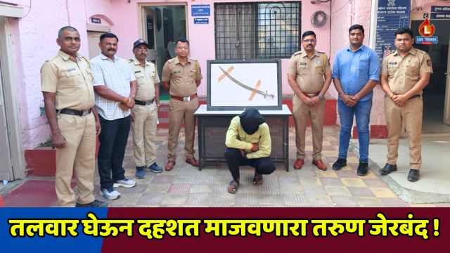 पाचोरा-लाईव्ह ट्रेंडस न्यूज प्रतिनिधी । पाचोरा शहरातील जारगाव चौफुली परिसरात तलवार घेऊन दहशत माजवणाऱ्या एका १९ वर्षीय तरुणाला पाचोरा पोलीसांनी अटक केली आहे. त्याच्याकडून लोखंडी तलवार हस्तगत करण्यात आली असून पाचोरा पोलीस ठाण्यात गुन्हा दाखल करण्यात आला आहे.