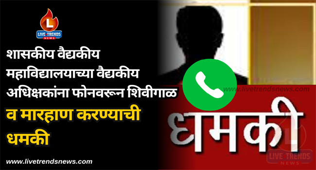 जळगाव-लाईव्ह ट्रेंडस न्यूज प्रतिनिधी| लाईव्ह ट्रेंड्स न्यूज प्रतिनिधी माहिती अधिकारात मागितलेली माहिती न दिल्याने शासकीय वैद्यकीय महाविद्यालय व रुग्णालयाचे वैद्यकीय अधीक्षक डॉ. विजय गायकवाड यांना मोबाईलवरून शिवीगाळ केल्याचा प्रकार समोर आले आहे. यात रुग्णालयाची तोडफोड करून डॉक्टरांना मारहाण करेल, अशी धमकीही देण्यात आली. या प्रकरणी शुक्रवारी जिल्हापेठ पोलिस ठाण्यात अदखलपात्र गुन्ह्याची नोंद करण्यात आली आहे.