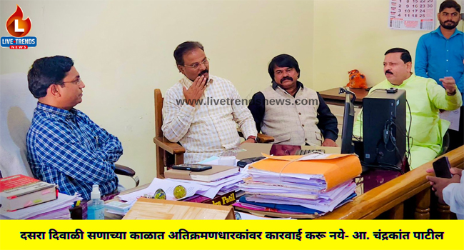 दसरा दिवाळी सणाच्या काळात अतिक्रमणधारकांवर कारवाई करू नये- आ. चंद्रकांत पाटील