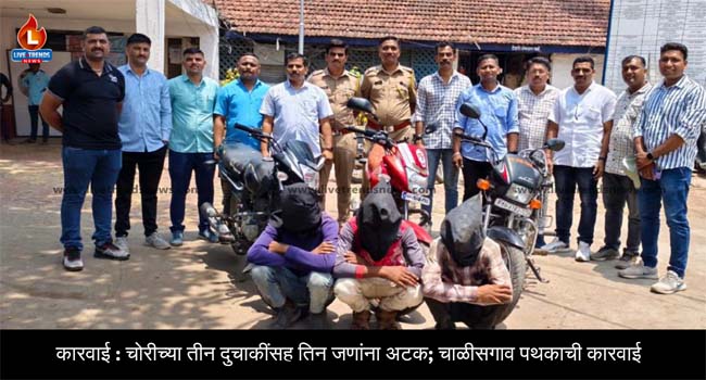 नानासाहेब सुदाम आहेर वय २९ रा. नांदगाव ता. जि.नाशिक हा तरूण आपल्या परिवारासह वास्तव्याला आहे. शनिवारी १५ जून रोजी दुपारी १२.३० वाजता नानासाहेब हा त्याच्या दुचाकी क्रमांक (एमएच ४१ बीजी ६९४१) ने चाळीसगाव शहरातील विठ्ठल मंदीराजवळ कामाच्या निमित्ताने आलेला होता. त्यावेळी त्याने त्याची दुचाकी ही मंदीरासमोर पार्कींगला लावलेली दुचाकी चोरून नेली. हा प्रकार लक्षात आल्यानंतर त्याने दुचाकीचा सर्वत्र शोध घेतला परंतू दुचाकी मिळून आली नाही. अखेर त्याने रविवारी १६ जून रोजी सकाळी ११ वाजता चाळीसगाव शहर पोलीस ठाण्यात धाव घेवून तक्रार दिली. त्यांनी दिलेल्या तक्रारीवरून सुनिल रघुनाथ मेघाळे वय २२, तुळशीराम मच्छिद्र जाधव वय १९ आणि कचरू शिवा मिंघाळ सर्व रा. कन्नड जि. छत्रपती संभाजी नगर यांच्या विरोधात गुन्हा दाखल करण्यात आला. तिघांना अटक करण्यात आली त्यांच्याकडून चोरीच्या एकुण ३ दुचाकी हस्तगत करण्यात आली आहे. पुढील तपास पोहेकॉ राहूल सोनवणे हे करीत आहे.