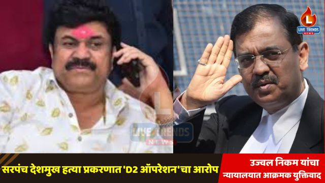 बीड – लाईव्ह ट्रेंड्स न्यूज वृत्तसेवा। सरपंच संतोष देशमुख हत्या प्रकरणातील सुनावणीत आज बीड न्यायालयात मोठे नाट्य घडले. विशेष सरकारी वकील उज्वल निकम यांनी आरोपींकडून न्यायप्रक्रिया लांबवण्याचे पद्धतशीर प्रयत्न होत असल्याचा गंभीर आरोप करत, याला ‘D2 ऑपरेशन’ असे नाव दिले. आरोपींकडून वारंवार अर्ज करून खटला विलंबित केला जात असल्याचे निकम यांनी ठामपणे न्यायालयात मांडले. त्याचबरोबर त्यांनी आरोपींच्या दोषमुक्ती अर्जावरही जोरदार विरोध केला.
