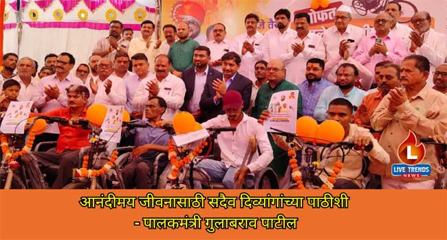 जळगाव-लाईव्ह ट्रेंडस न्यूज प्रतिनिधी । या उपक्रमाच्या माध्यमातून दिव्यांगांना दिली जाणारी मदत ही सामाजिक भावनेतून केली जात असून यात कृतज्ञता व विनम्रताही भावना आहे. दिव्यांगाने स्वतःतील सामर्थ्य ओळखून आत्मविश्वासाने स्वतःच्या पायावर उभे राहावे, जीवनात यशस्वी होण्यासाठी आत्मविश्वास ही मोठी ताकद आहे. दिव्यांगांना मदत म्हणजे ईश्वरी सेवा असून दिव्यांगांना आनंदीमय जीवन जगता यावे यासाठी सदैव त्यांच्या पाठीशी खंबीरपणे उभा आहे. असे प्रतिपादन प्रतिपादन पाणीपुरवठा व स्वच्छता मंत्री तथा जिल्ह्याचे पालकमंत्री गुलाबराव पाटील यांनी केले.