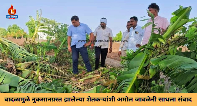 रावेर-लाईव्ह ट्रेंडस न्यूज प्रतिनिधी | वादळामुळे रावेर तालुक्यात हजारो हेक्टर वरील केळी भुईसपाट झाली असून शेतकरी चिंताग्रस्त असतांना भाजपाचे जिल्हाध्यक्ष अमोल हरिभाऊ जावळे यांनी नुकसानग्रस्त शेतक-यांची भेटी घेत नुकसानीमुळे खचून जाऊ नका शासना आपल्या सोबत असल्याचे. सांगत नुकसानीचे शासना कडून पंचनामे करण्यासंदर्भात आपण शासनस्तरावर बोललो असल्याचे त्यांनी शेतक-यांना सांगितले.