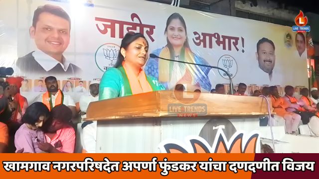 खामगाव-लाईव्ह ट्रेंड्स न्यूज प्रतिनिधी । संपूर्ण राज्याचे लक्ष लागून असलेल्या खामगाव नगरपरिषद निवडणुकीत सौ. अपर्णा फुंडकर यांनी मोठ्या मताधिक्याने विजय मिळवत नगराध्यक्षपदावर आपले नाव कोरले आहे. या ऐतिहासिक विजयानंतर आयोजित जाहीर सभेत त्यांनी आपल्या भावना व्यक्त करत हा विजय दिवंगत सासरे, भाजपचे ज्येष्ठ नेते भाऊसाहेब फुंडकर तसेच निष्ठावंत कार्यकर्त्यांना समर्पित करत असल्याचे जाहीर व्यासपीठावरून सांगितले.
