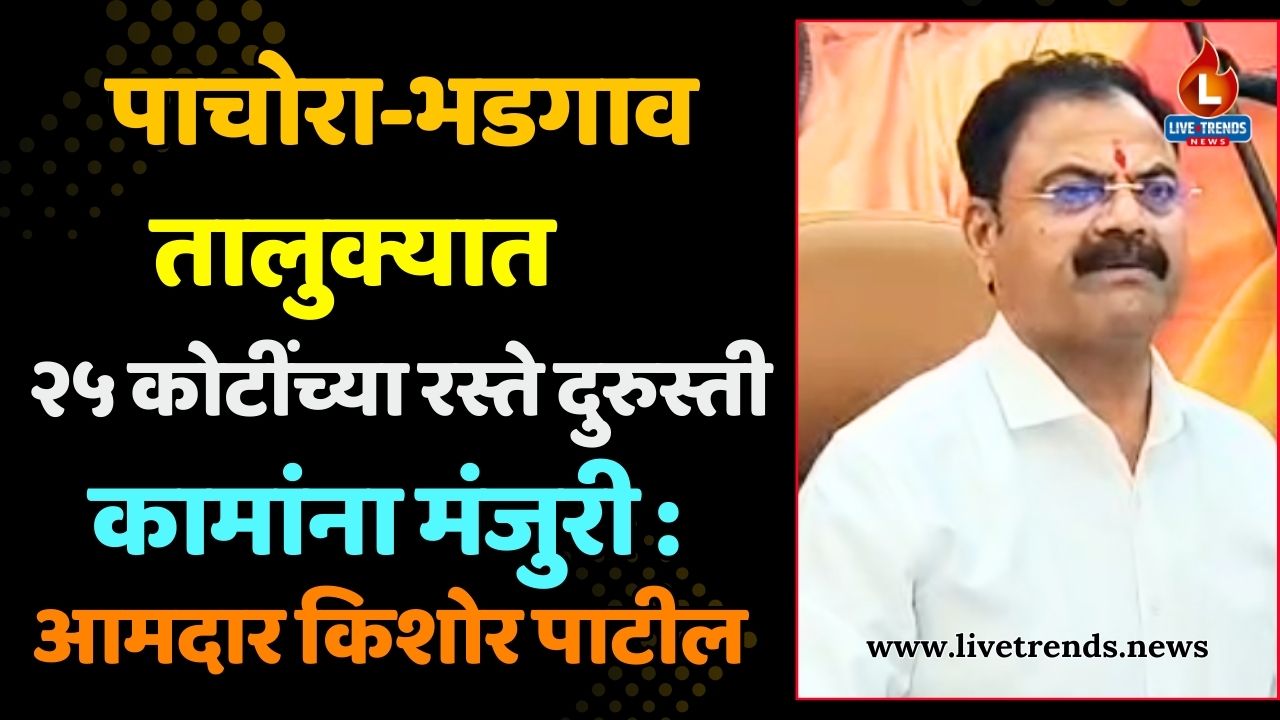 पाचोरा-लाईव्ह ट्रेंड्स न्यूज प्रतिनिधी ।  पाचोरा आणि भडगाव तालुक्यातील रस्ते सुधारणा व पुलांच्या कामांसाठी तब्बल २५ कोटी रुपयांच्या विकासकामांना मंजुरी मिळाली असून लवकरच या कामांना सुरुवात होणार असल्याची माहिती आमदार किशोर पाटील यांनी पत्रकार परिषदेत दिली. सार्वजनिक बांधकाम विभागाच्या माध्यमातून ही कामे हाती घेतली जाणार असून त्यामुळे ग्रामीण भागातील वाहतूक सुविधा अधिक सुकर होण्याची अपेक्षा व्यक्त केली जात आहे.