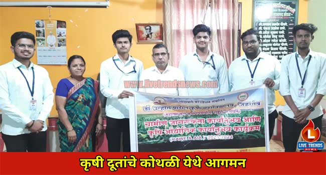 मुक्ताईनगर-लाईव्ह ट्रेंडस न्यूज प्रतिनिधी | डॉ. उल्हास पाटील कृषी महाविद्यालय, जळगाव येथील अंतिम वर्षातील विद्यार्थी पुढील सहा महिन्यासाठी कोथळी या गावात राहणार असून त्यांनी शेतकऱ्यांना माती परीक्षण, एकात्मिक कीड नियंत्रण, रोग नियंत्रण, भाजीपाला लागवड, फळबाग लागवड नियंत्रण, पाणी परिक्षण, विविध योजना, तसेच महिला बचत गट, इ पीक पाहणी अॅप इ.. प्रकारच्या सर्व माहिती व नवीन तंत्रज्ञान कसे आत्मसात करावे या विविध विषयी माहिती देण्यासाठी ग्रामीण जागरूकता कार्यानुभव कार्यक्रम २०२३-२०२४ यासाठी महाविद्यालयाचे प्राचार्य डॉ. शैलेश तायडे, कार्यक्रम समनव्यक प्रा. बी. एम. गोणशेटवाड, कार्यक्रम अधिकारी प्रा. एन. बी. सदार व संबंधित विषयातील विषय विशेषतज्ञ यांच्या मार्गदर्शनाखाली नामे घनओम पाटील, प्रथम थोरात, जयेश पाटील, रोशन सोनवणे, अनिकेत शिंदे, कार्तिकेय रेड्डी व अमोगोत जीवन या गावात दाखल झाले असून. ग्रामपंचायत कोथळी व सर्व ग्रामस्थ यांच्या वतीने या विद्यार्थ्यांचे स्वागत करण्यात आले. यावेळी गावचे उपसरपंच व ग्रामपंचायत सदस्य उपस्थीत होते. हा उपक्रम गावकऱ्यांच्या उपस्थित पार पडणार आहे.