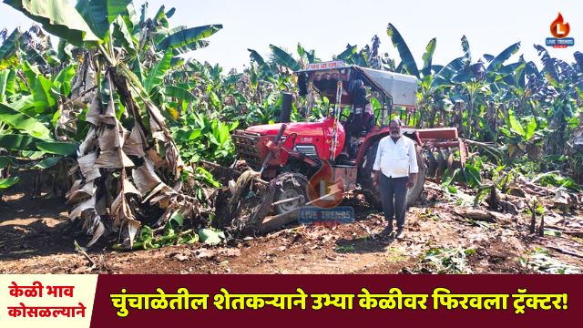 केळी भाव कोसळल्याने  — चुंचाळेतील शेतकऱ्याने उभ्या केळीवर फिरवला ट्रॅक्टर!
