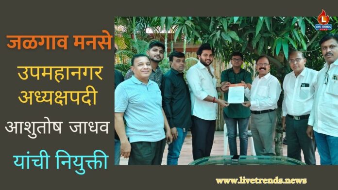 जळगाव-लाईव्ह ट्रेंड्स न्यूज प्रतिनिधी । महाराष्ट्र नवनिर्माण सेनेच्या जळगाव शहर संघटनेत महत्त्वाची संघटनात्मक नियुक्ती करण्यात आली असून आशुतोष जाधव यांची जळगाव शहर उपमहानगर अध्यक्षपदी नियुक्ती करण्यात आली आहे. मनसेचे नेते ॲड. जयप्रकाश बाविस्कर यांनी ही नियुक्ती जाहीर केली असून संघटना अधिक मजबूत करण्यासाठी जाधव यांच्यावर महत्त्वाची जबाबदारी सोपविण्यात आली आहे.
