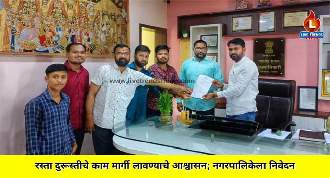 रस्ता दुरूस्तीचे काम मार्गी लावण्याचे आश्वासन; नगरपालिकेला निवेदन