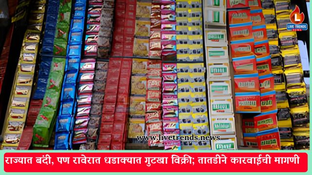रावेर–लाईव्ह ट्रेंड्स न्यूज प्रतिनिधी । महाराष्ट्रात गुटख्यावरील कडक बंदी लागू असतानाही रावेर शहरात दिवसाढवळ्या सुरू असलेल्या त्याच्या उघड विक्रीमुळे नागरिकांमध्ये तीव्र संतापाची भावना निर्माण झाली आहे. शहरातील अनेक ठिकाणी गुटखा सहज उपलब्ध असल्याचे वास्तव समोर येत असून, बंदी असलेल्या मादक पदार्थांच्या अशा बेकायदेशीर व्यवहाराकडे प्रशासनाचे दुर्लक्ष होत असल्याची टीका होत आहे.