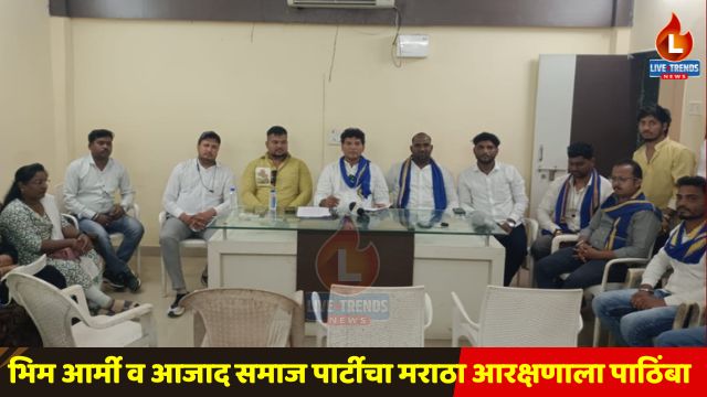यावल – लाईव्ह ट्रेंड्स न्यूज प्रतिनिधी ।  मराठा समाजाला आरक्षण मिळावे या मागणीला आता नव्या राजकीय पाठिंब्याची जोड मिळाली आहे. भिम आर्मी व आजाद समाज पार्टीने मराठा समाजाच्या आरक्षणाच्या लढ्याला खुलेआम पाठिंबा जाहीर करत आगामी स्थानिक स्वराज्य संस्थांच्या निवडणुकीत आपले उमेदवार उतरवण्याची घोषणा केली आहे. जळगाव जिल्ह्यासह राज्यभर सामाजिक न्यायासाठी कार्यरत असलेल्या या संघटनांनी लोकशाही मूल्यांची जोपासना करत, सर्वसामान्यांचा आवाज बुलंद करण्याचे धोरण स्वीकारले आहे.