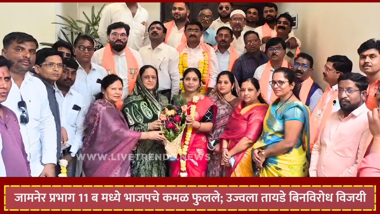 जामनेर-लाईव्ह ट्रेंड्स न्यूज प्रतिनिधी । जामनेर नगरपालिकेच्या निवडणुकीत प्रभाग क्रमांक 11 ब मध्ये भाजपाला मोठा राजकीय दिलासा मिळाला आहे. जलसंपदा मंत्री गिरीश महाजन यांच्या राजकीय नेतृत्वाला बळ देणारी ही निवडणी ठरली असून अधिकृत उमेदवार उज्वला दीपक तायडे या बिनविरोध निवडून आल्या आहेत. प्रभागातील छाननी प्रक्रियेदरम्यान विरोधी उमेदवाराचा अर्ज बाद झाल्याने त्यांचा मार्ग सुकर झाला.