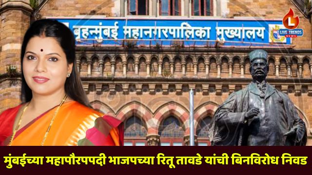 मुंबई-लाईव्ह ट्रेंड्स न्यूज वृत्तसेवा। मुंबई महानगरपालिकेला अखेर महापौर मिळाला असून प्रशासक राज संपुष्टात येत ‘महापौरराज’ सुरू झाले आहे. भाजपच्या रितू तावडे यांनी मुंबईच्या महापौरपदाची सूत्रे स्वीकारली, तर एकनाथ शिंदे यांच्या नेतृत्वाखालील शिवसेनेचे संजय घाडी यांनी उपमहापौरपदाची जबाबदारी स्वीकारली. विरोधात एकही उमेदवार नसल्याने दोघांचीही बिनविरोध निवड झाली. नव्या अधिसूचनेनुसार पालिका आयुक्तांनी पीठासीन अधिकारी म्हणून काम पाहिल्यामुळे यंदाची निवड प्रक्रिया विशेष ठरली.