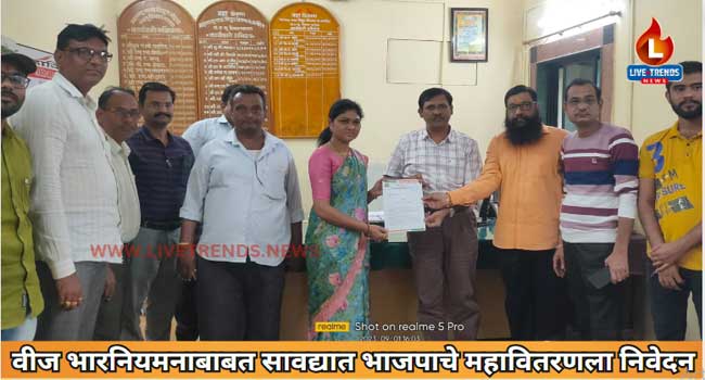 सावदा-लाईव्ह ट्रेंडस न्यूज प्रतिनिधी । सावदा शहरात गेल्या काही दिवसांपासून महावितरणतर्फे आपत्कालीन भार नियमन करण्यात येत आहे. सुरू असलेले भारनियमन तातडीने बंद करण्याची मागणीचे निवेदन सावदा भाजपातर्फे महावितरण कंपनीला देण्यात आले.
