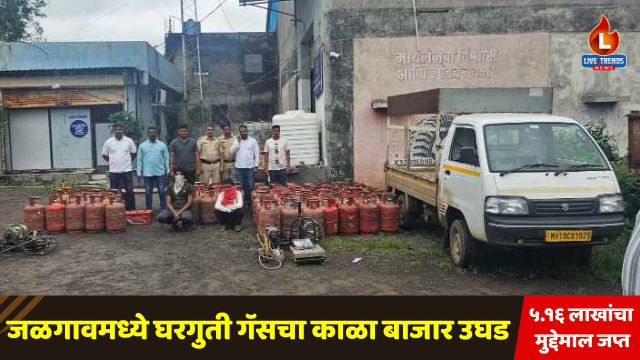 जळगाव-लाईव्ह ट्रेंड्स न्यूज प्रतिनिधी । जळगाव जिल्ह्यात अवैधरित्या घरगुती गॅसचा काळा बाजार सुरू असल्याची माहिती स्थानिक गुन्हे शाखेला मिळाल्यानंतर तातडीने कारवाई करत दोन ठिकाणी छापे टाकून मोठ्या प्रमाणावर गॅस सिलिंडर, वाहने आणि अन्य साहित्य असा सुमारे ५.१६ लाख रुपयांचा मुद्देमाल जप्त करण्यात आला. या कारवाईत दोन आरोपींना अटक करण्यात आली असून त्यांच्या विरोधात धरणगाव पोलिस ठाण्यात गुन्हा दाखल करण्यात आला आहे.
