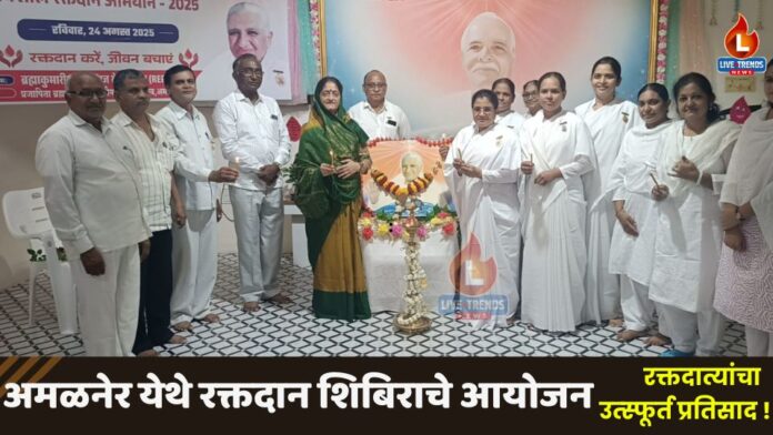 अमळनेर-लाईव्ह ट्रेंडस न्यूज प्रतिनिधी । प्रजापिता ब्रह्माकुमारी ईश्वरीय विद्यालय, अमळनेर यांच्या वतीने राजयोगिनी दादी प्रकाशमणी यांच्या १८ व्या पुण्यतिथी आणि विश्वबंधुत्व दिनानिमित्त एका भव्य रक्तदान शिबिराचे आयोजन करण्यात आले होते. या शिबिरात १०७ रक्तदात्यांनी सहभाग नोंदवून रक्तदान केले.