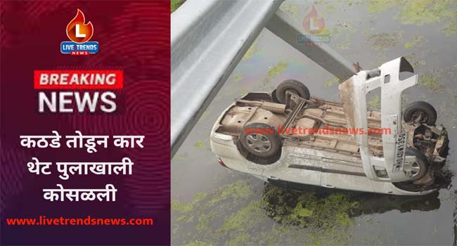 अमळनेर-लाईव्ह ट्रेंडस न्यूज प्रतिनिधी । अमळनेर ते चोपडा महामार्गावर भरधाव कारवरील चालकाचे नियंत्रण सुटल्याने पुलाचे कठडे तोडून कार थेट पुलाच्या खाली कोसळल्याची घटना रविवारी ६ ऑगस्ट रोजी घडली. सुदैवाने या घटनेत कोणतीही जिवीत हानी झाली नाही.