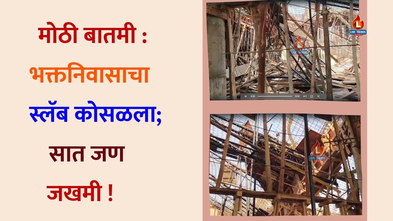 धरणगाव लाईव्ह ट्रेंडस न्यूज प्रतिनिधी । धरणगाव तालुक्यातील पाळधी येथील प्रसिद्ध साईबाबा मंदिर परिसरात सोमवारी १६ मार्च रोजी दुपारी एक मोठी दुर्घटना घडली. पर्यटन विकास प्रकल्पांतर्गत सुरू असलेल्या शासकीय भक्त निवासाच्या बांधकामाचा स्लॅब अचानक कोसळल्याने ७ कामगार गंभीररीत्या जखमी झाले आहेत. या घटनेमुळे मंदिर परिसरात एकच खळबळ उडाली असून बांधकामाच्या गुणवत्तेवर आणि कामगारांच्या सुरक्षेवर आता प्रश्नचिन्ह उपस्थित केले जात आहे.