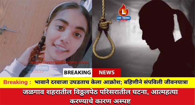 जळगाव लाईव्ह ट्रेंड्स न्यूज प्रतिनिधी । लहान भावाला दुकानावर वस्तू घेण्यासाठी पाठवून जळगाव शहरातील विठ्ठलपेठ परिसरात राहणाऱ्या १७ वर्षीय अल्पवयीन मुलीने कोणत्यातरी तणावातून राहत्या घरात गळफास घेऊन आत्महत्या केल्याची घटना शुक्रवारी १३ ऑक्टोबर रोजी दुपारी अडीच वाजेच्या सुमारास समोर आले आहे. यावेळी नातेवाईकांनी जिल्हा शासकीय वैद्यकीय महाविद्यालयात एकच आक्रोश केला होता. याबाबत शनीपेठ पोलीस ठाण्यात अकस्मात मृत्यूची नोंद करण्यात आले आहे. ट्विंकल उर्फ पूजा सुरेश चौधरी (वय-१७, रा. विठ्ठल पेठ, जळगाव) असे माहीत झालेल्या अल्पवयीन मुलीचे नाव आहे.