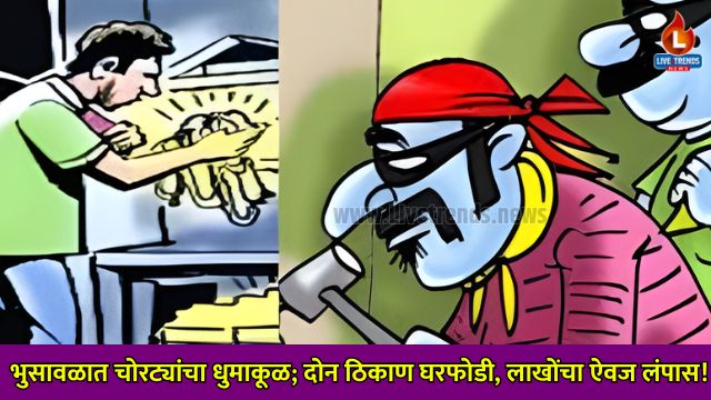 इतकेच नव्हे तर, त्याच दरम्यान परिसरातील आणखी एका घरातून १४ हजार रुपये किमतीचे सोन्या-चांदीचे दागिने आणि २९०० रुपये रोख चोरून नेले. दोन्ही घरातून असा एकूण ९९ हजार ६०० रुपयांचा मुद्देमाल चोरट्यांनी लंपास केला आहे. फिर्यादी शर्मा हे घरी परतल्यानंतर त्यांच्या घरात चोरी झाल्याचे समोर आले. याप्रकरणी भुसावळ बाजारपेठ पोलीस ठाण्यात तक्रार देण्यात आली. या प्रकरणाचा पुढील तपास पोलीस हेड कॉन्स्टेबल कांतीलाल केदारे करत आहेत.