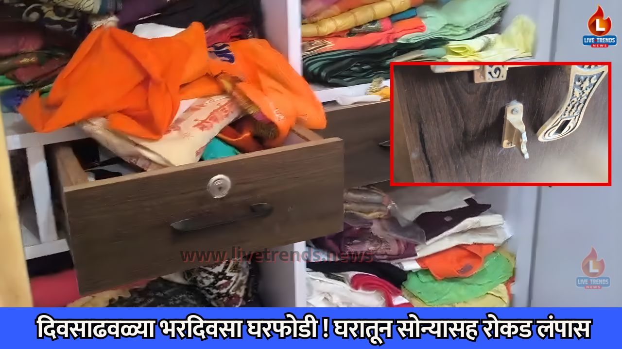 आज दुपारी जगताप यांची पत्नी मुलांना शाळेतून घरी आणण्यासाठी बाहेर गेल्या होत्या. त्याच दरम्यान चोरट्यांनी घराच्या मुख्य दरवाजाचा कडी-कोयंडा तोडत घरात प्रवेश मिळवला. अल्प वेळात घरातील सामानाची उचथापालथ करून चोरट्यांनी अंदाजे २० ग्रॅम सोन्याचे दागिने आणि ५० हजार रुपये रोख रक्कम लंपास केली. जगताप यांची पत्नी घरी परत आल्यानंतर घराचा दरवाजा तुटलेला आणि सामान अस्ताव्यस्त अवस्थेत दिसताच त्यांनी तत्काळ आपले पती भावडू जगताप यांना फोन करून संपूर्ण घडलेला प्रकार कळवला.