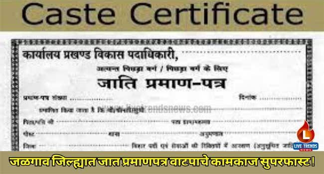 जिल्ह्यात १५ तालुक्यांतील नागरिकांसाठी ६ उपविभागीय महसूल अधिकाऱ्यांमार्फत जात प्रमाणपत्र वाटपाचे कामकाज केले जाते. अनुसूचित जाती (SC), अनुसूचित जमाती (ST) व इतर मागास प्रवर्ग (OBC) जात प्रमाणपत्र वाटपात जळगाव जिल्ह्यात मागील वर्षाच्या (एप्रिल २०२२ – मार्च २३) तुलनेत यावर्षीच्या एप्रिल २०२३ ते ऑक्टोबर २०२३ च्या सात महिन्यात ५२ टक्के अधिक कामकाज झाले आहे. मागील वर्षी दररोजचे सरासरी २०० जात प्रमाणपत्र वाटप होत होते. तर यावर्षी दररोजचे सरासरी ३०६ जात प्रमाणपत्र वाटप होत आहेत. मागील आर्थिक वर्षात २०२२-२३ मध्ये एकूण ७३२१७ जात प्रमाणपत्रांचे वाटप झाले. तर एप्रिल २०२३ नंतरच्या सात महिन्यात ६५१४२ जात प्रमाणपत्रांचे वाटप झाले आहे. चालू आर्थिक वर्षातील अजून पाच महिने शिल्लक आहेत. उपविभागीय अधिकारी जात प्रमाणपत्र समित्यांचे कामकाज असेच सुपरफास्ट चालले तर पुढील पाच महिन्यांत ४५ हजार जातप्रमाणपत्र वाटपाची शक्यता आहे.