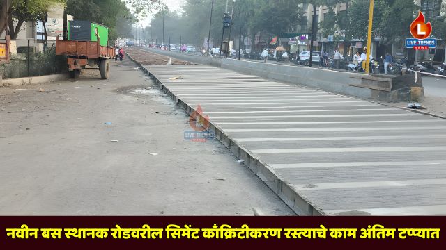जळगाव-लाईव्ह ट्रेंड्स न्यूज प्रतिनिधी । शहरातील वाहतुकीसाठी महत्त्वाच्या मानल्या जाणाऱ्या नवीन बस स्थानक रोडवरील रस्त्याच्या कामाने अखेर वेग घेतला असून, बँक ऑफ महाराष्ट्र शेजारील सुमारे १८० मीटर लांबीच्या सिमेंट काँक्रिटीकरण रस्त्याचे काम अंतिम टप्प्यात आले आहे. अनेक दिवसांपासून रखडलेल्या या कामामुळे नागरिकांना दिलासा मिळणार असून, उद्यापर्यंत हा रस्ता वाहतुकीसाठी खुला होणार आहे.