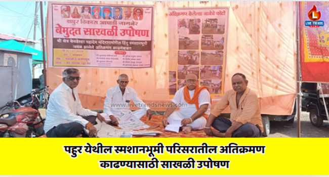 जामनेर तालुक्यातील पहूर पेठ येथे वाघुर नदीच्या तीरावर केवडेश्वर मंदिराजवळ हिंदू स्मशानभूमी आहे. या स्मशानभूमीलगत अतिक्रमण झालेले आहे . या अतिक्रमणामुळे शोकाकुल बांधवांना उभे राहण्यासाठी देखील पुरेशी जागा नसते . दिवसेंदिवस अतिक्रमण वाढतच असून याकडे मात्र प्रशासनाचे दुर्लक्ष होत आहे . गेल्या वर्षी देखील वाघूर विकास आघाडीतर्फे स्मशानभूमीतील अतिक्रमण काढण्यासाठी घंटानाद आंदोलन करून जागा मोजणीसाठी लोकवर्गणीतून शासकीय शुल्क भरले.प्रशासनाने अतिक्रमण काढण्यात येईल , असे आश्वासन दिल्यानंतर आंदोलन मागे घेण्यात आले . मात्र वर्ष उलटले तरी अतिक्रमण ‘जैसे थे ‘ आहे . त्यामुळे तिसऱ्यांदा वाघूर विकास आघाडीच्या वतीने पहूर बस स्थानकावर ग्रामपंचायत समोर सुकलाल बारी , भाऊराव गोंधनखेडे , सुधाकर शिनगारे , सुनील सोनार , ज्ञानेश्वर घोलप दिलीप पांढरे , विजय देशमुख यांच्या नेतृत्वाखाली आज पासून लाक्षणिक उपोषणास सुरुवात झाली . ग्रामपंचायत सदस्य अशोक जाधव, भगवान कुमावत यांच्यासह ग्रामस्थांचे सहकार्य लाभत आहे.